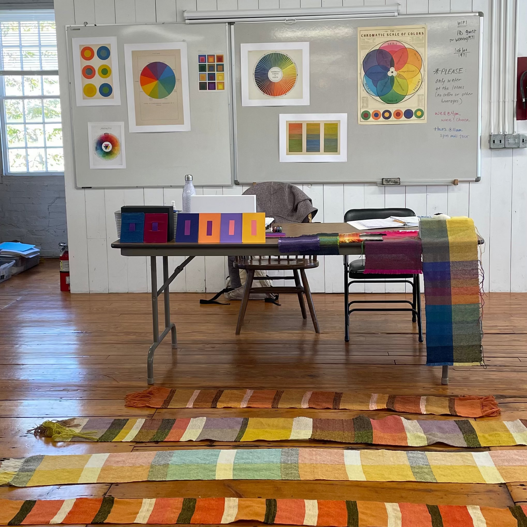 Workshops vary in skill levels and lengths. Enrollment is limited to ensure each student is immersed in the atmosphere of a working studio rather than a classroom. Most scheduled classes meet from 9 am to 4 pm; however, the studio is open to students 24 hours a day while their class is in session. Looms are provided in the weaving classes, and woolen yarn and other materials are included unless otherwise noted in the materials lists online. While taking a class, students receive a 10% discount on HD items in our store, including looms! (Excludes sale and consignment items)